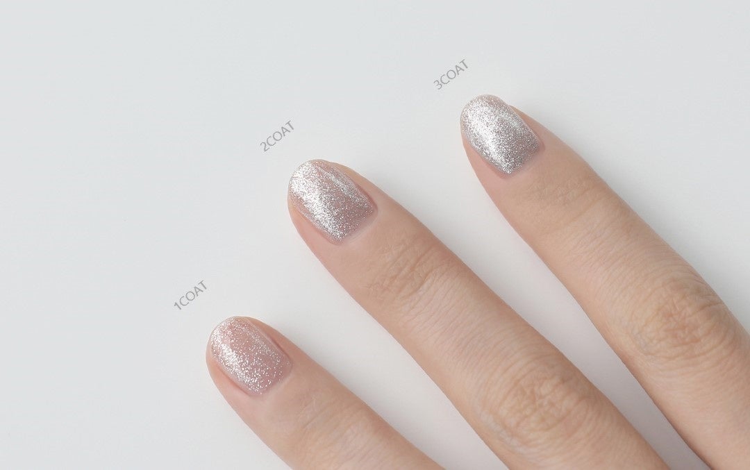 重ね塗りでニュアンスの変化を楽しめます。 重ねても、透明感のあるツヤっとした仕上がり。