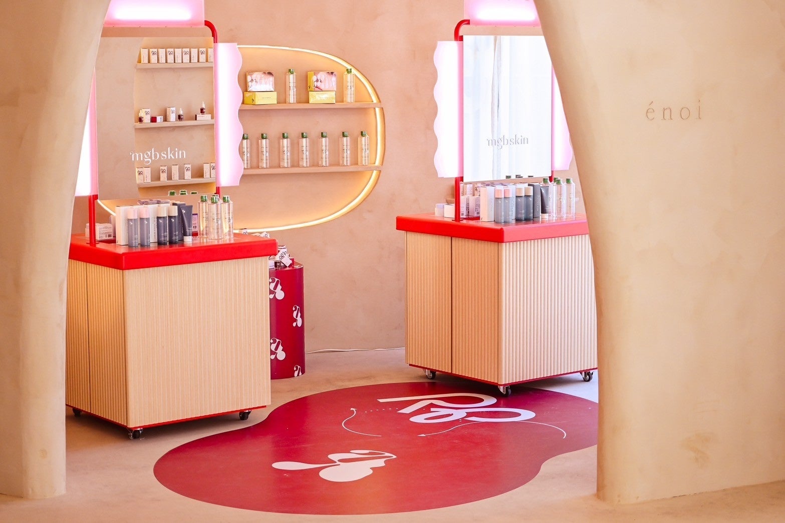 会場では、プールリゾートからインスピレーションを受けた〈mgb skin〉の世界観と、〈énoi〉のニュアンスカラー溢れる開放的な空間がシナジーを生み、訪れる方々を楽しませる期間限定POPUPとなった。5/10(金)にはオープニングレセプションパーティーを行い、約200名の著名人やインフルエンサー、関係者達が訪れ会場に華を添えた。また今回のPOPUP期間中には、連日完売商品が続出する人気ぶりで大盛況のイベントとなった。