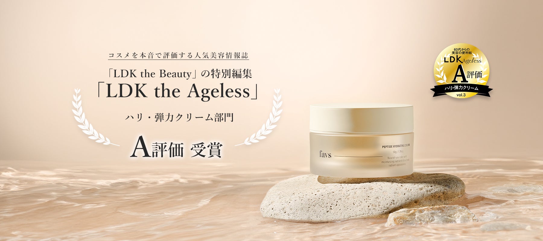 株式会社ダイヤコーポレーション(所在地:東京都新宿区 代表取締役:高野祐一)は、山中美智子によるスキンケアブランド〈favs〉の「ペプチドハイドレーティングクリームEX」が、本気で批評する人気美容情報誌「LDK the Beauty」の特別編集となる「LDK the Ageless vol.3 」老けないベストコスメ、ハリ・弾力クリーム部門にてA評価を受賞いたしました。
