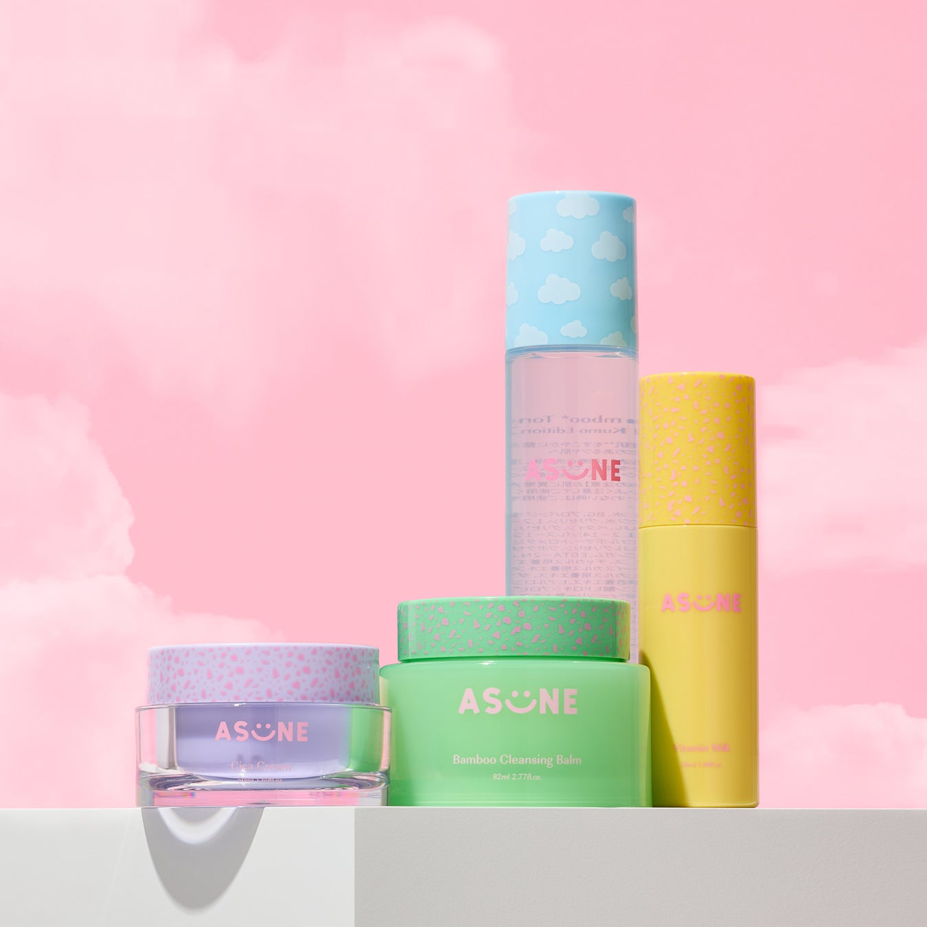 雲をモチーフにしたPOP-UP限定デザインのバンブートナーと、ASUNEのスキンケアアイテムを揃えたスペシャルセット!限定ノベルティのふわふわヘアバンドも付いてきます。