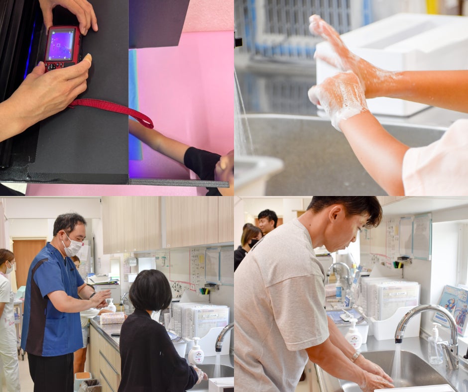 イベントは先生の手洗いレクチャーからスタート。子供から大人まで普段の手洗いでどれくらいの汚れが残っているか、特殊な装置を用いて確認。子供たちはもちろん、大人としても普段の手洗いでどれくらいの効果があるのかなどを再認識できる貴重な時間となった。