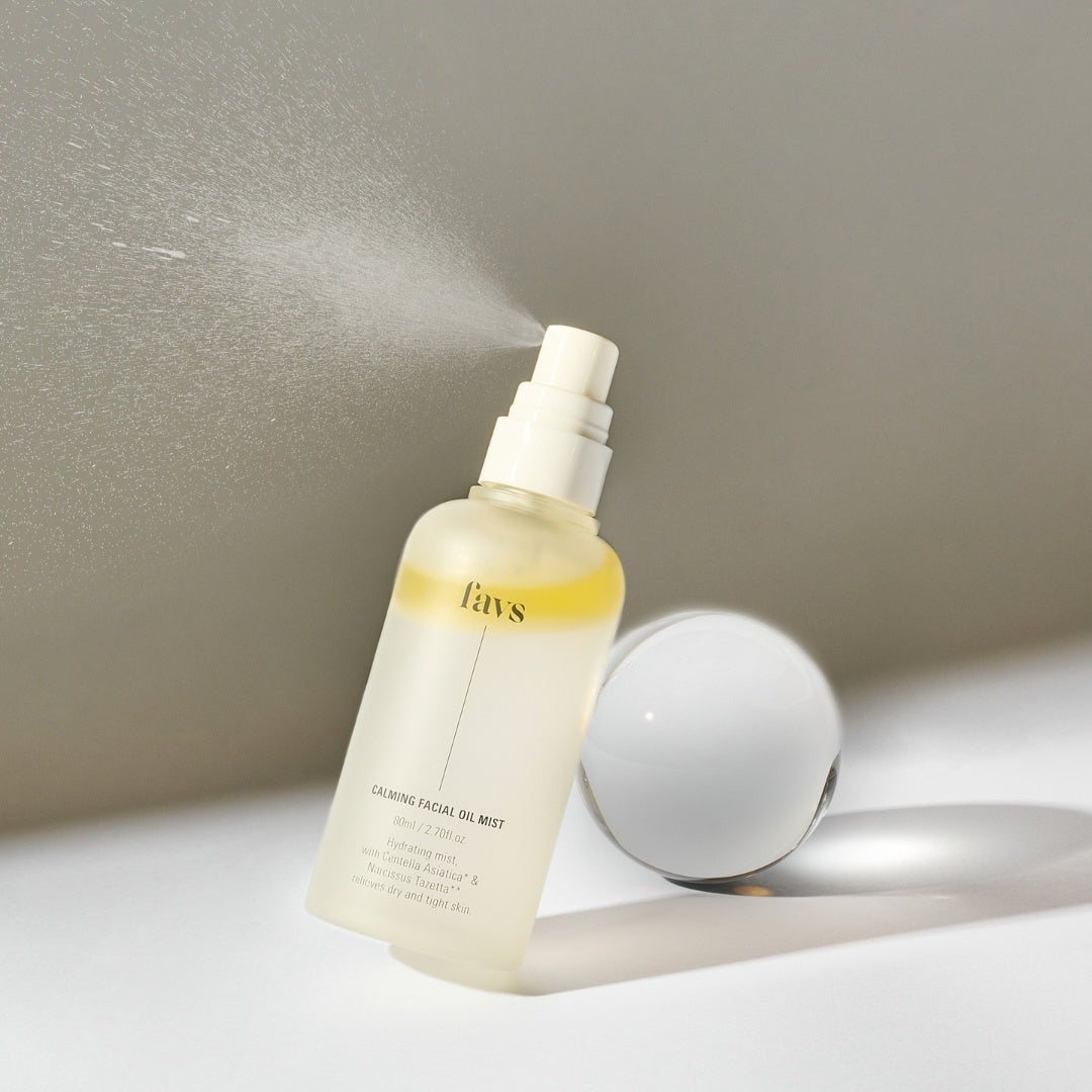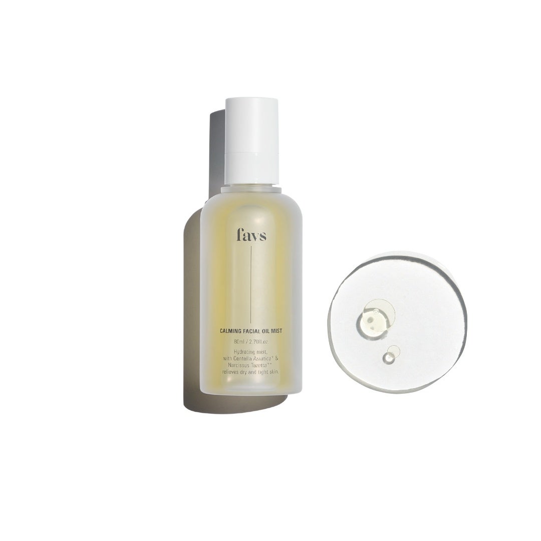 favsベストセラー製品のカーミングフェイシャルミストをベースに、水分を保有する能力と揺らいだ肌*¹をすこやかに整える機能にすぐれたスイセンのエキス*²や月見草エキス*³、カテキンやフラボノイドを含む緑茶エキス*⁴など植物成分を厳選配合。