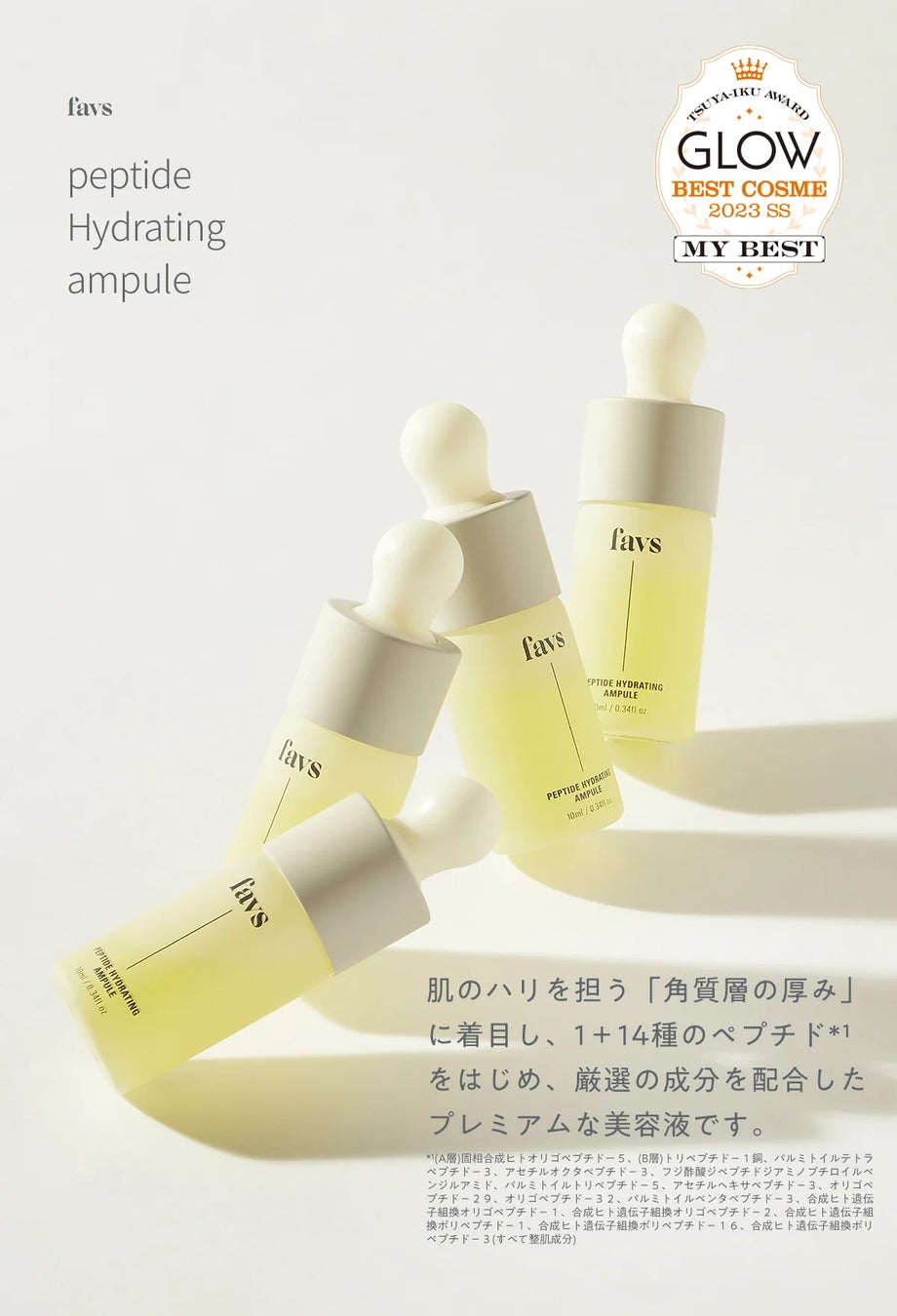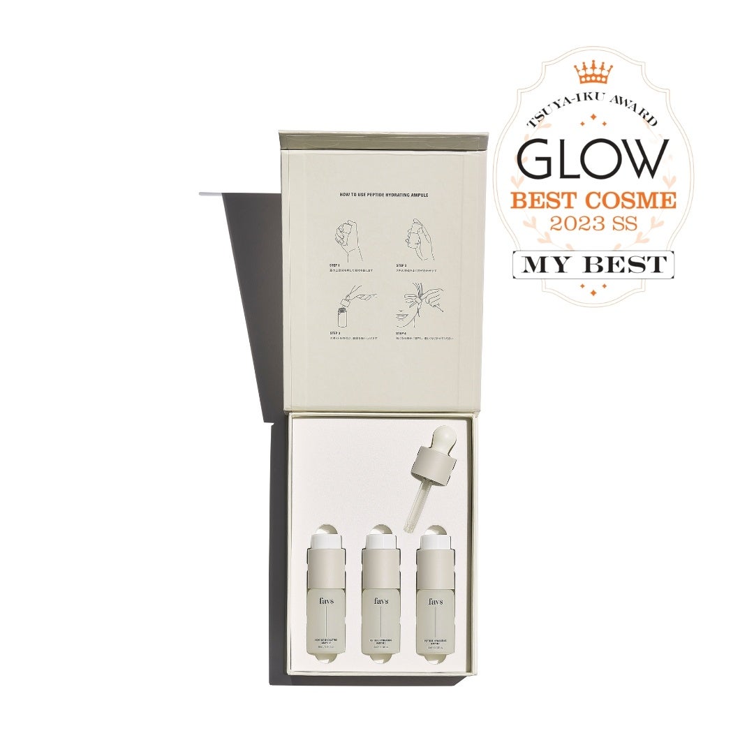 株式会社ダイヤコーポレーション(所在地:東京都新宿区)は、山中美智子によるスキンケアブランド〈favs〉のエイジングケア*¹を全多方位で叶える美容液、ペプチドハイドレーティングアンプルが宝島社の人気40代ファッション雑誌 GLOW 2023年8月号にて、GLOW世代を知り尽くした編集部員おすすめのとっておきの『GLOW ≪ツヤ育≫MYベストコスメ』を受賞いたしました。*¹年齢に応じたお手入れ