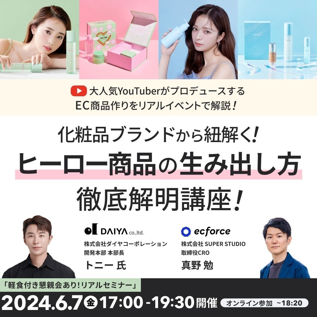 システムを通じて合計1,000億円を超える売上を達成した統合コマースプラットフォーム「ecforce」を提供する株式会社SUPER STUDIOと、化粧品ブランドのコンセプト提案から販売までをサポートする株式会社ダイヤコーポレーションの初イベントです。