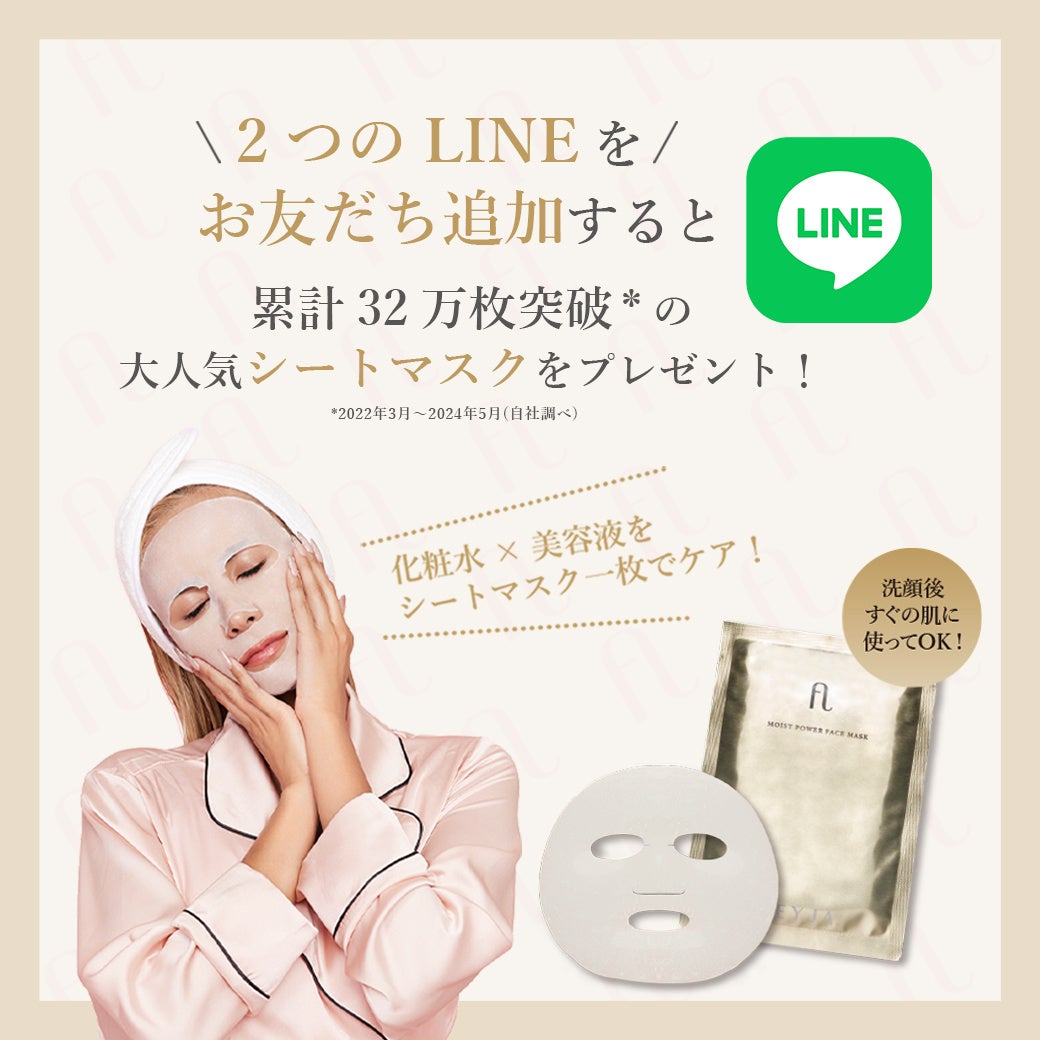 FLEYJA.とパナソニックビューティの公式LINE2つをお友だち登録、店内で商品体験をするとFLEYJA.の人気シートマスク1枚と、FLEYJA.公式オンラインストアで使えるクーポン券をプレゼントいたします。
