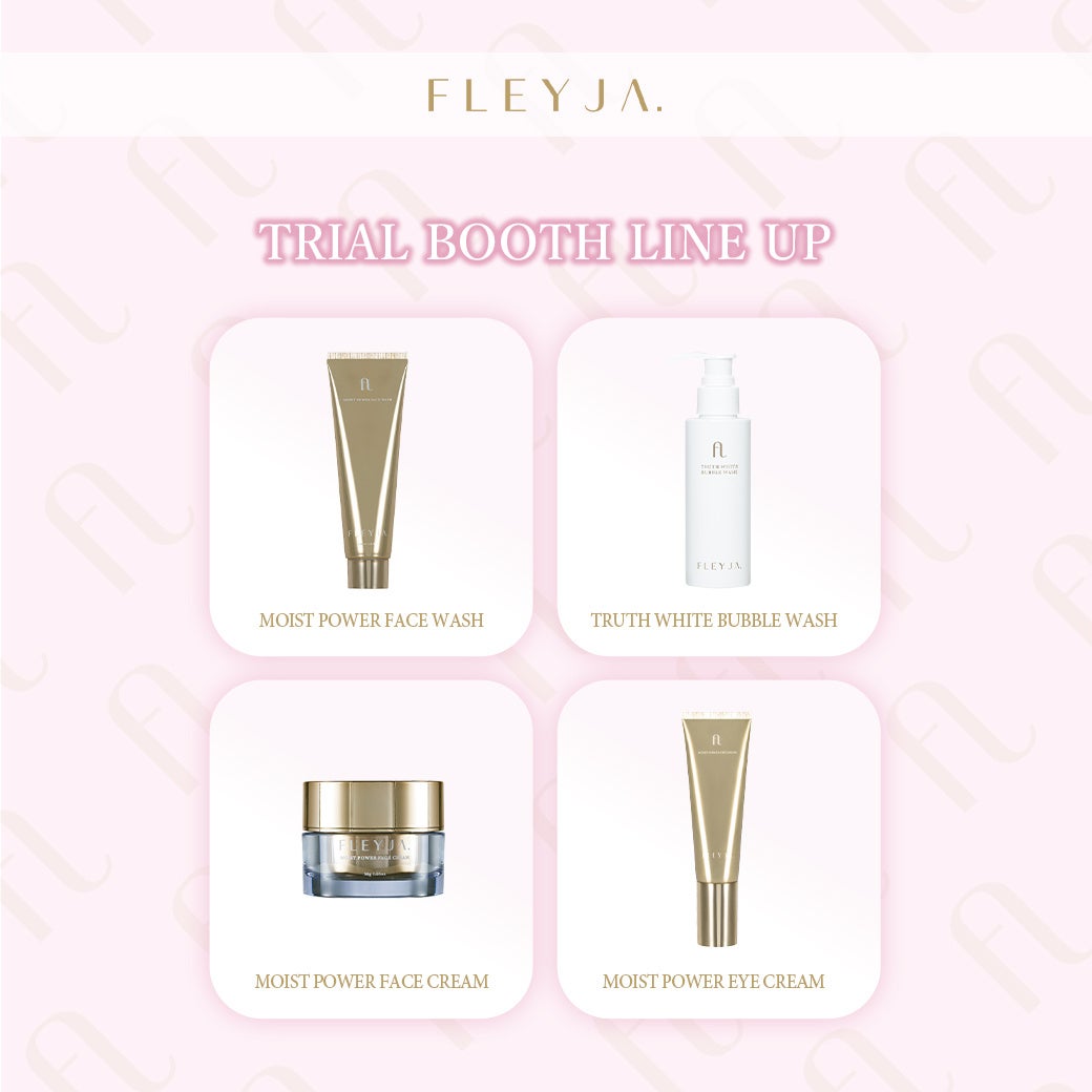 トライアルブースにて、FLEYJA.の製品をメイクオフして体感できます。